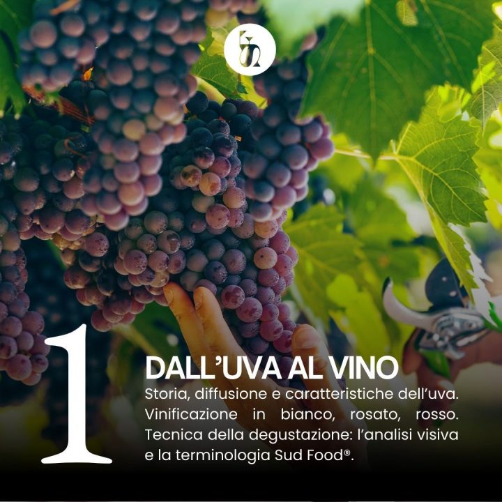 Il Corso di Avvicinamento al Vino di Sud Food® è il punto di partenza ideale per chi desidera esplorare il mondo del vino in modo semplice, pratico ed interattivo. Strutturato in 4 appuntamenti serali, questo corso introduce le basi della degustazione, della valutazione sensoriale e delle principali tecniche di servizio e conservazione.