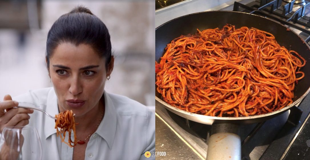 Gli Spaghetti all’Assassina sono apparsi nella fiction “Lolita Lobosco” con protagonista Luisa Ranieri. Già in precedenza nella fiction abbiamo avuto modo di ritrovare un altra specialità pugliese: gli “Sporcamuss“, un tipico dolce ripieno di crema e ricoperto di zucchero a velo.