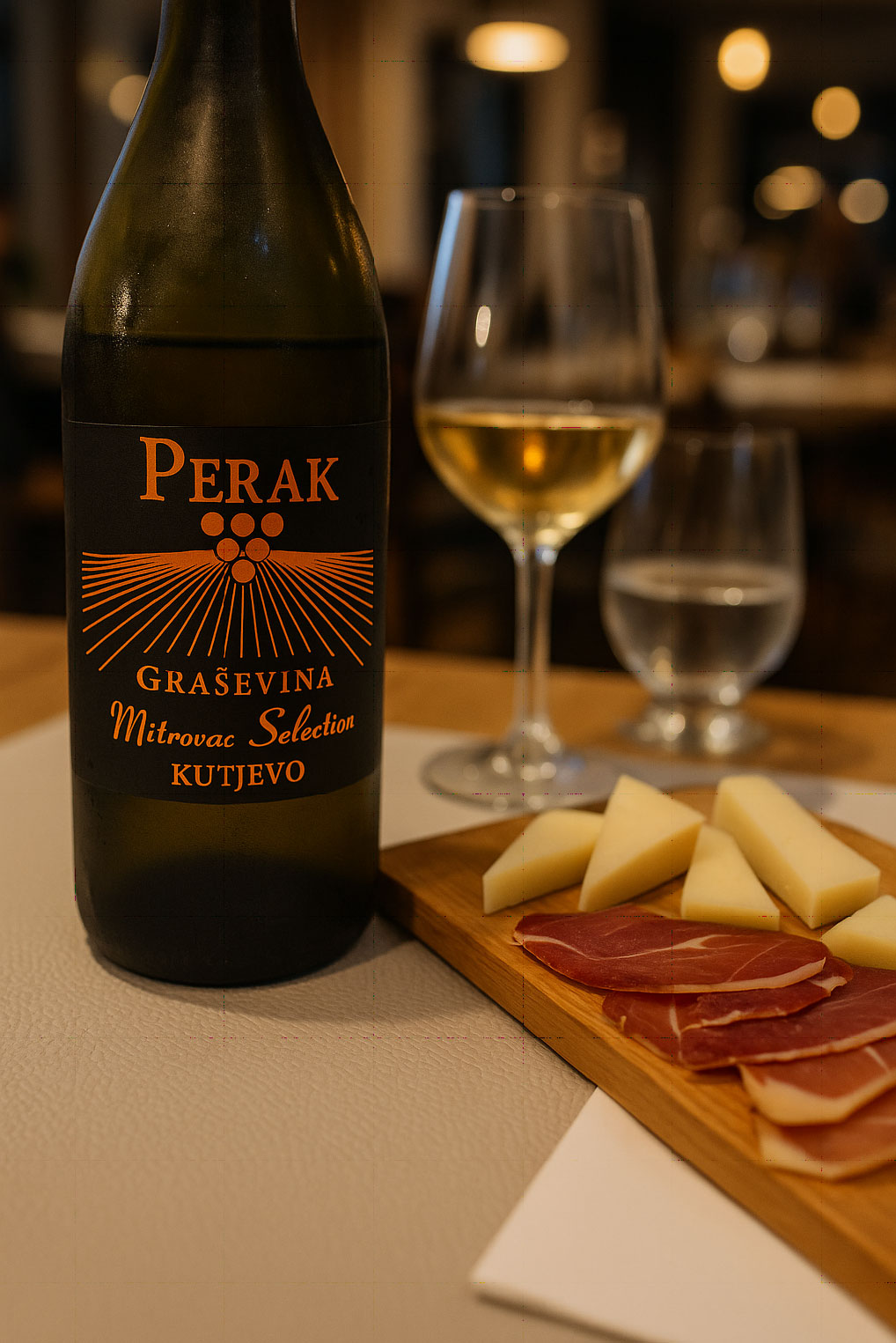 Il viaggio è proseguito verso l’entroterra, nel verde intenso dei Laghi di Plitvice. Cascate, passerelle di legno e specchi d’acqua turchese hanno creato uno degli scenari più suggestivi del viaggio. La sera, in una piccola locanda immersa nel silenzio della foresta, abbiamo assaggiato formaggi stagionati, pršut croato e pane caldo, accompagnati da un bicchiere di Graševina. Un bianco semplice, fresco, con profumi di fiori bianchi e mela verde, perfetto per una cena rustica e sincera. La sua acidità naturale ripuliva il palato e invitava al boccone successivo.