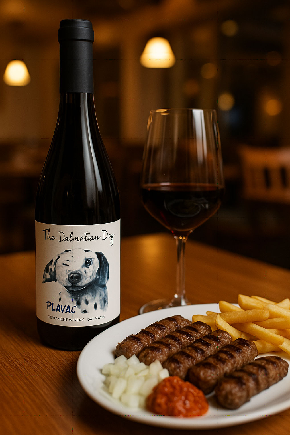 Trogir è un gioiello medievale affacciato sull’acqua, un labirinto di pietra e storia. In una konoba tradizionale abbiamo ordinato i ćevapčići, carne macinata speziata e servita con ajvar e pane caldo.Nel calice, il re dei rossi croati: Plavac Mali. Rubino, caldo, con note di prugna, ciliegia e un tocco balsamico. La sua struttura importante avvolgeva la carne, bilanciando grassezza e spezie. Una delle migliori espressioni del territorio. È stata una delle serate più autentiche del viaggio.